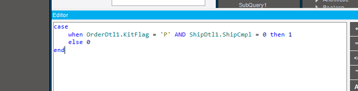 when OderDtl1.KitFlag = 'P' and (ShipDtl.ShipCmpl = 0 or ShipDtl.ShipCmpl IS NULL) then 1