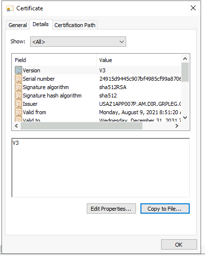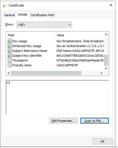 Kevin, I found a certificate that IIS is using on the server to which I’m issueing the REST call that is not expired. To verify the certificate like you indicated, where would I find the hash value? I have a screenshot of the certificate details below, would it be the Thumbprint or Serial Number value?