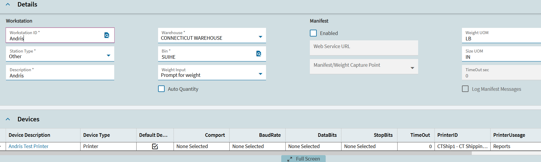 To test, I set up a new workstation for myself with a random warehouse and bin, and added the network printer as the default device. I assigned the worstation to myself and then logged out and back in.