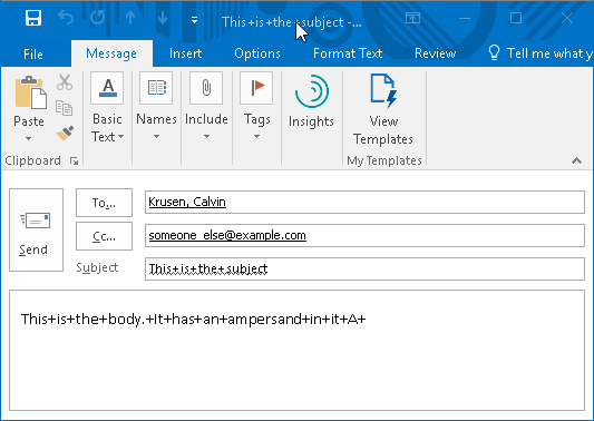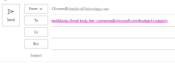 outlook.exe /c ipm.note /m someone@microsoft.com&subject=subject%20test&body=Email%20body%20test