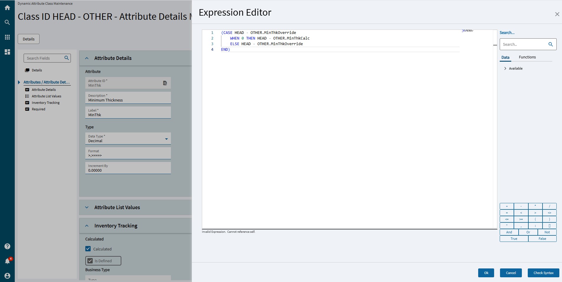 while this doesnât (notice HEAD - OTHER.MinThk exists in HEAD - OTHER.MinThkCalc)