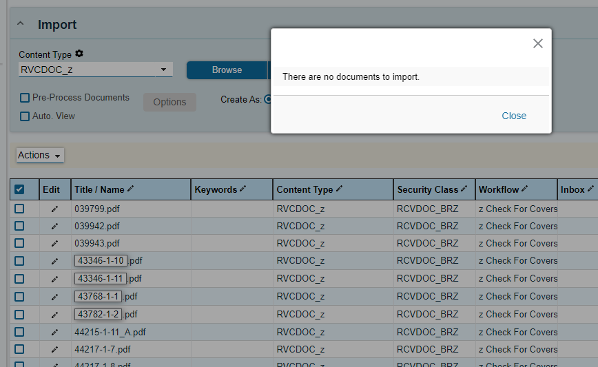 I loaded about 1000 documents using Windows File Select in the Import window. I probably should have un-checked the Pre-Process flag.