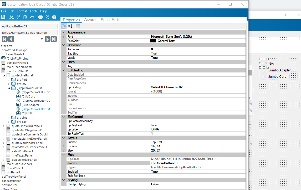 I have radio buttons on the Quote Entry Screen, Line/Detail tab. When I’m on the page I’m not able to select any of the radio buttons.