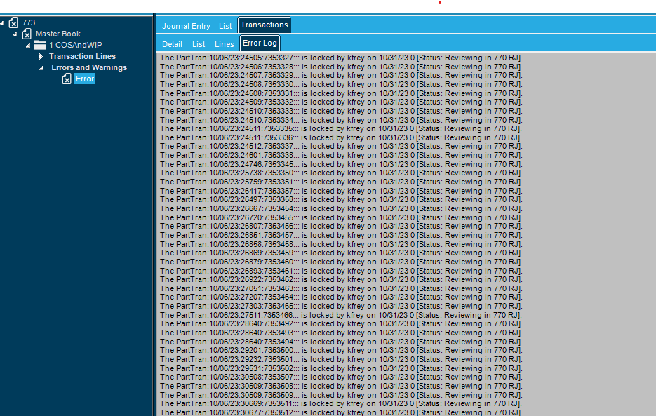 It looks one of our users got kicked out of Epicor when looking at a review journal. Now we can’t fix this review journal (773) because review journal (770) is locked. 770 has already been fixed and posted so it’s not in the review journal.