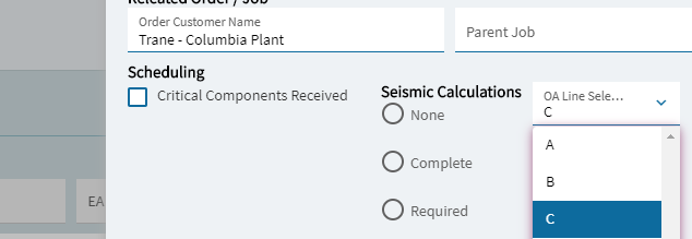 In the Job Entry screen, I’ve created a slide out with a Dropdown list that is generated via user codes. This is working fine; it’s bound to a UD field.