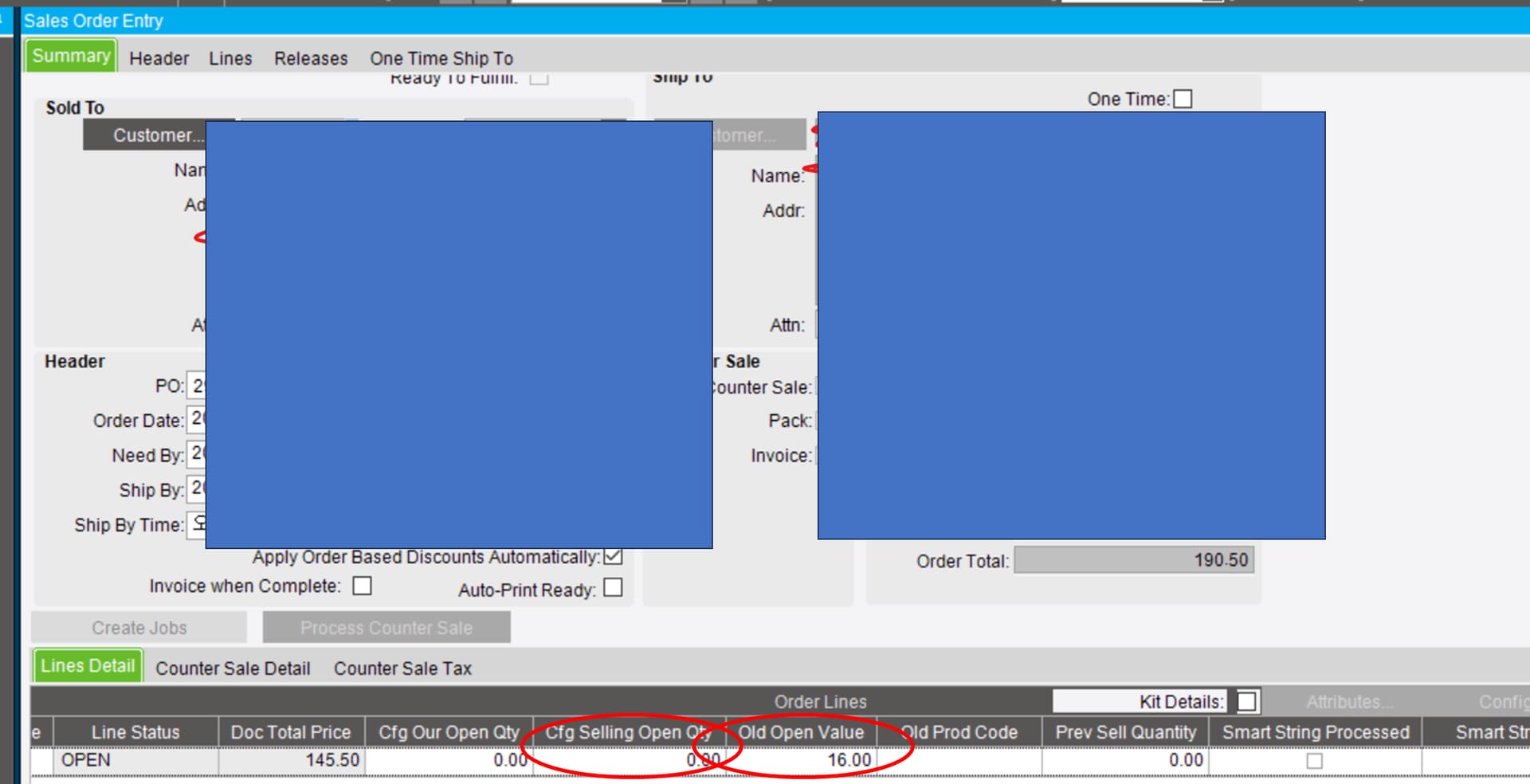 We want to put other information we need in unused fields in the order entry. The fields are “Cfg Selling Open Qty” and “Old Open Value”.