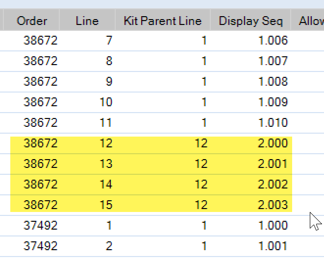 The column in your picture labeled “Kit Seq”, is that really OrderDtl.DisplaySeq?