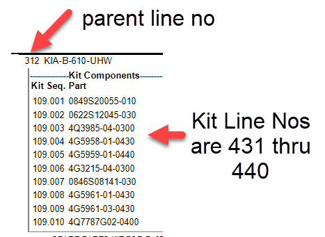 Here’s a real ugly one (section of SO acknowledgement) we had a few months ago where the kits were getting changed after initial order entry. The sales order pick list was real fun!