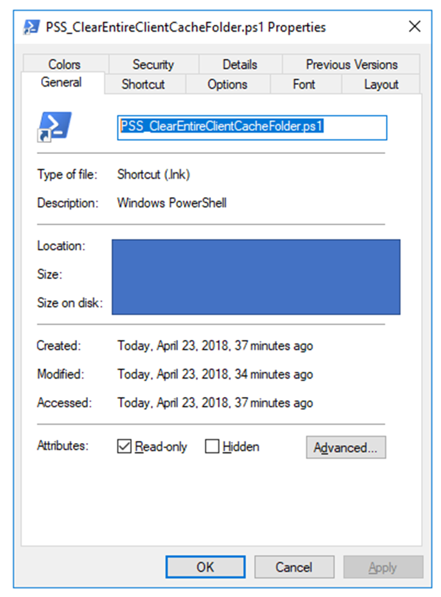 C:\Windows\System32\WindowsPowerShell\v1.0\powershell.exe -ExecutionPolicy RemoteSigned -command "& ‘\ \servername\EpicorStuff\Epicor10\PowerShell\PSS_ClearEntireClientCacheFolder.ps1’
