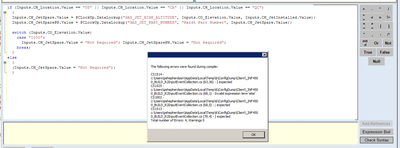 Inputs.CH_JetSparePN.Value = PCLookUp.DataLookup(“GAS_JET_PART_NUMBER”, “Hardt Part Number”, Inputs.CH_JetSpare.Value);