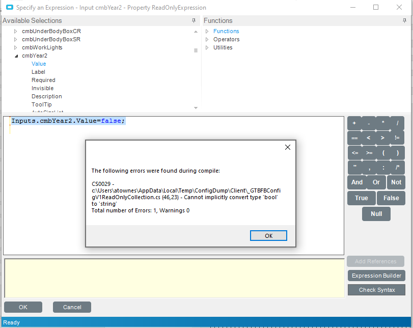 Let me back up a second … the ReadOnly property expects an expression. So you wouldn’t assign it a value like true or false, but rather an expression that returns true or false.
