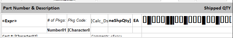 Like @danbedwards make sure you have an asterisk at the start and end of the string. In the past I’ve had issues with the Epicor provided calc fields for barcodes so I have created a new one.