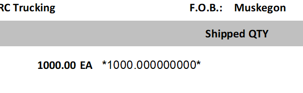 That barcode looks REALLY long for 1000.00 check the calc field and make sure you only have the fields for the qty. In CR change the font to something readable and then print preview and see what prints.