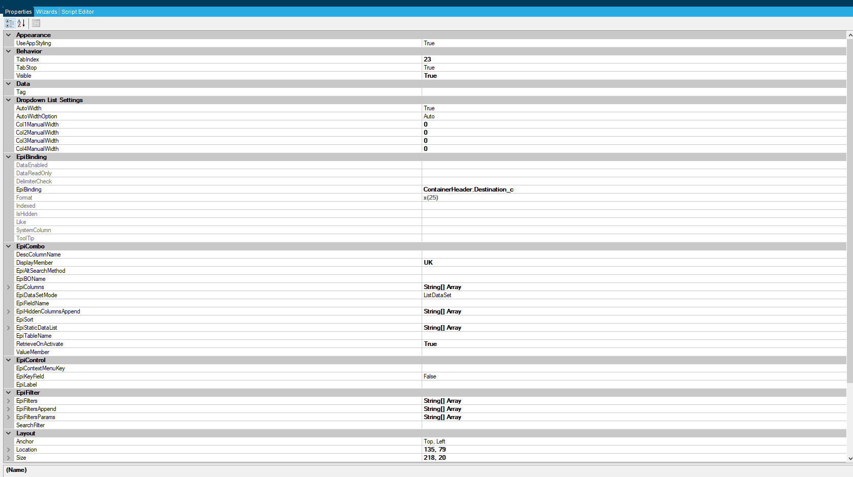 hello i am having an issue with my combo box it is set up to have three values in the drop down however it is only showing the first one and then adding it to every container previously and wont let me select from the drop down i want it so the destination can be selected per container not to have the same destination