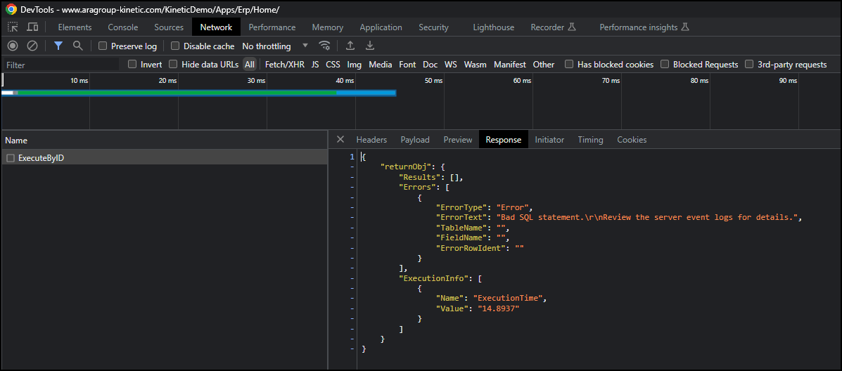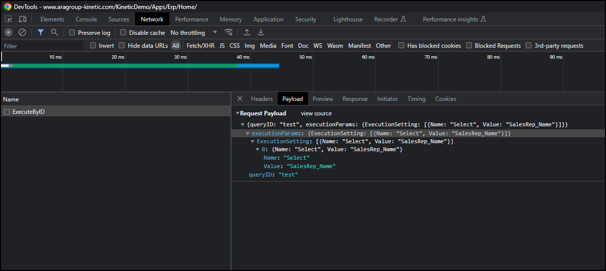 You should see an ExecuteByID call in there. Did you click on your drop down?