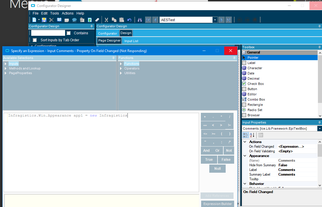Any idea why Epicor locks up for 5 minute after every time I type “Infragistics” in the expression editor? It it intellisense, and can I turn it off?