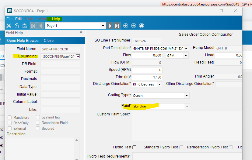 We are looking to add a Paint Color from Epicor Configurator to Sales Order Detail.