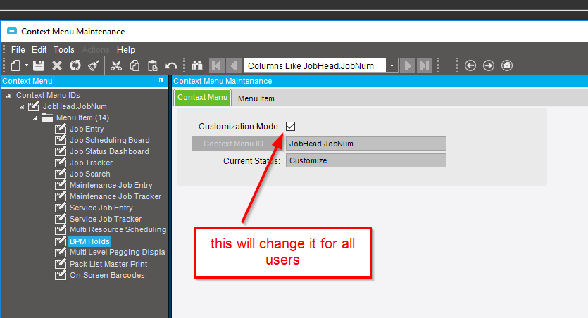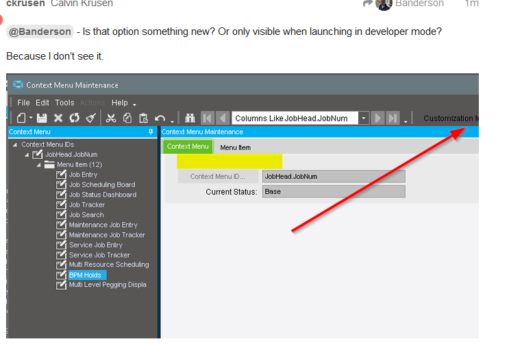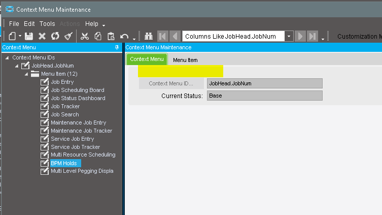 Context Menu Maintenance, as visible to me in my implementation of Epicor, is a “help-yourself” type tool.