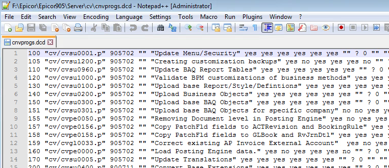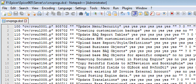 Or by looking at the content of the cnvprogs.dcd file located on the epicor server folder.