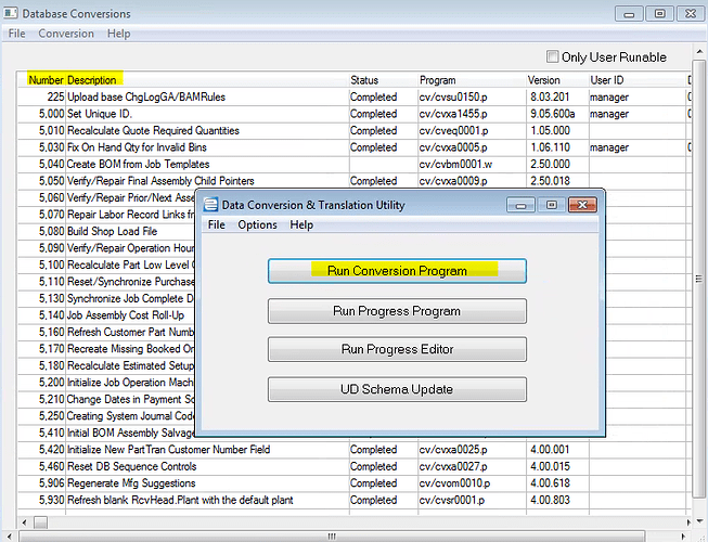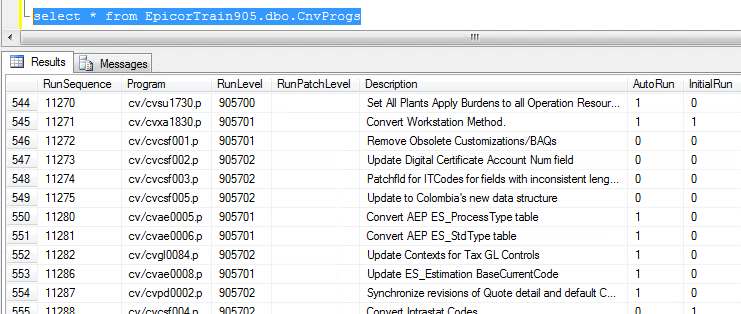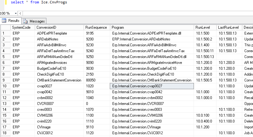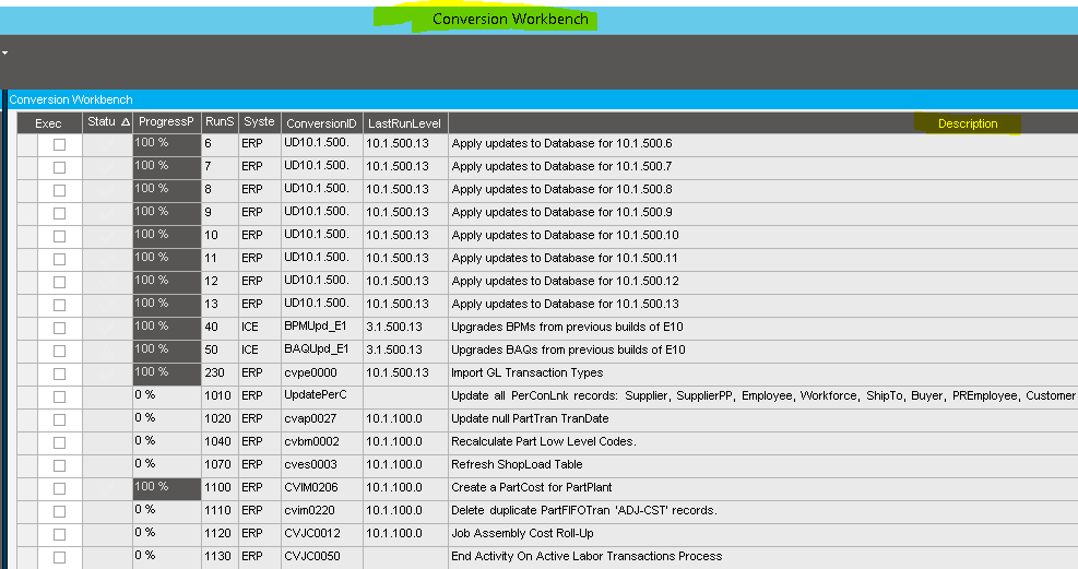In epicor 9 you see the list and what they do (description) using Epicor Admin Tools > Run Conversion Program.