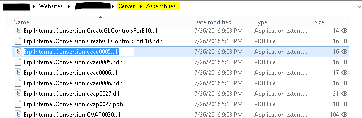 or looking for Erp.Internal.Conversion,dll under Server\Assemblies