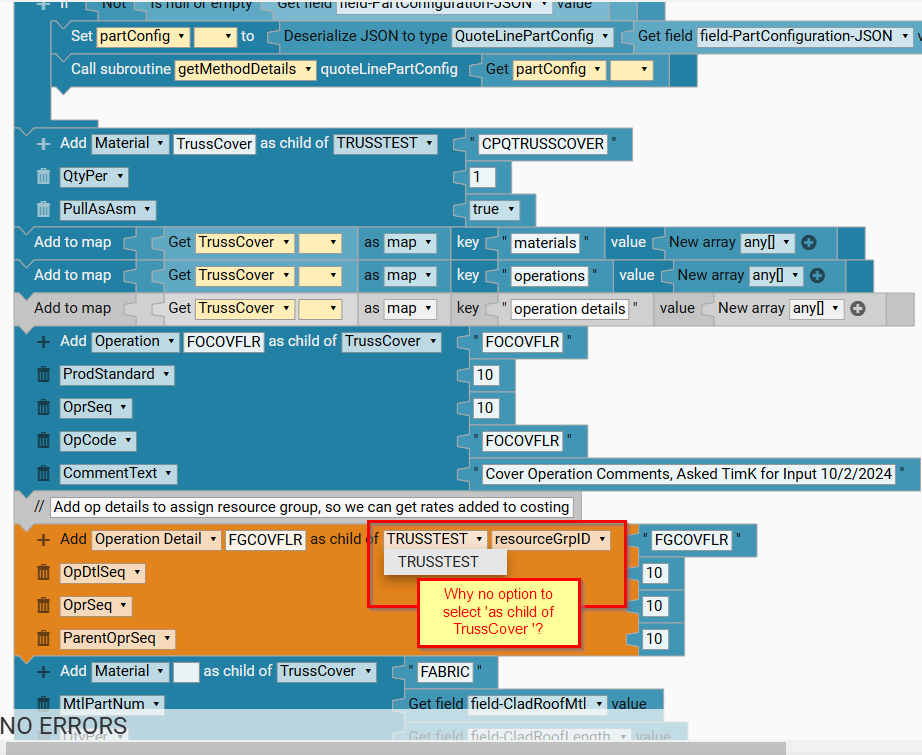 I’m stuck… Anyone using CPQ to create operations and assign a resource group? We’re trying to get the labor and burden estimate on to the price sheet as well, so we can update the total price accurately.