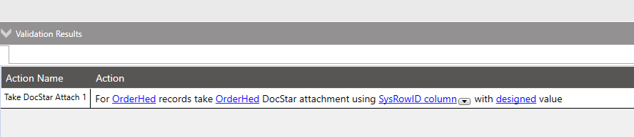 The Take DocStar Attachment was setup with the following action: