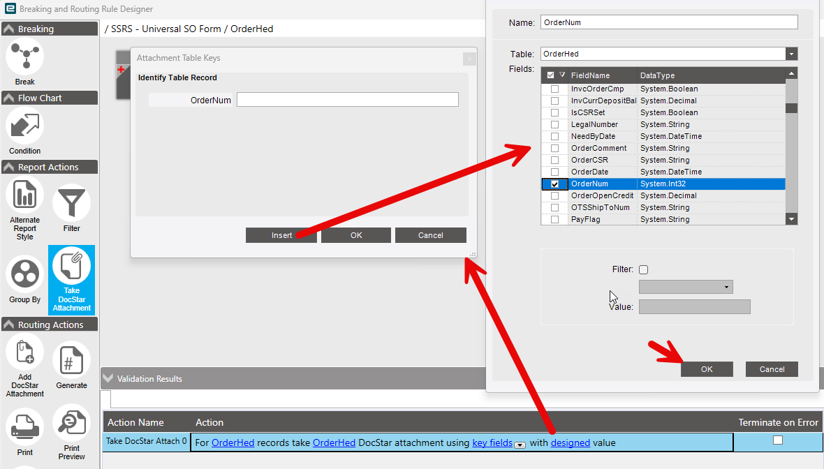 “For OrderHed records take OrderHed DocStar Attachment using key fields with designed value.”