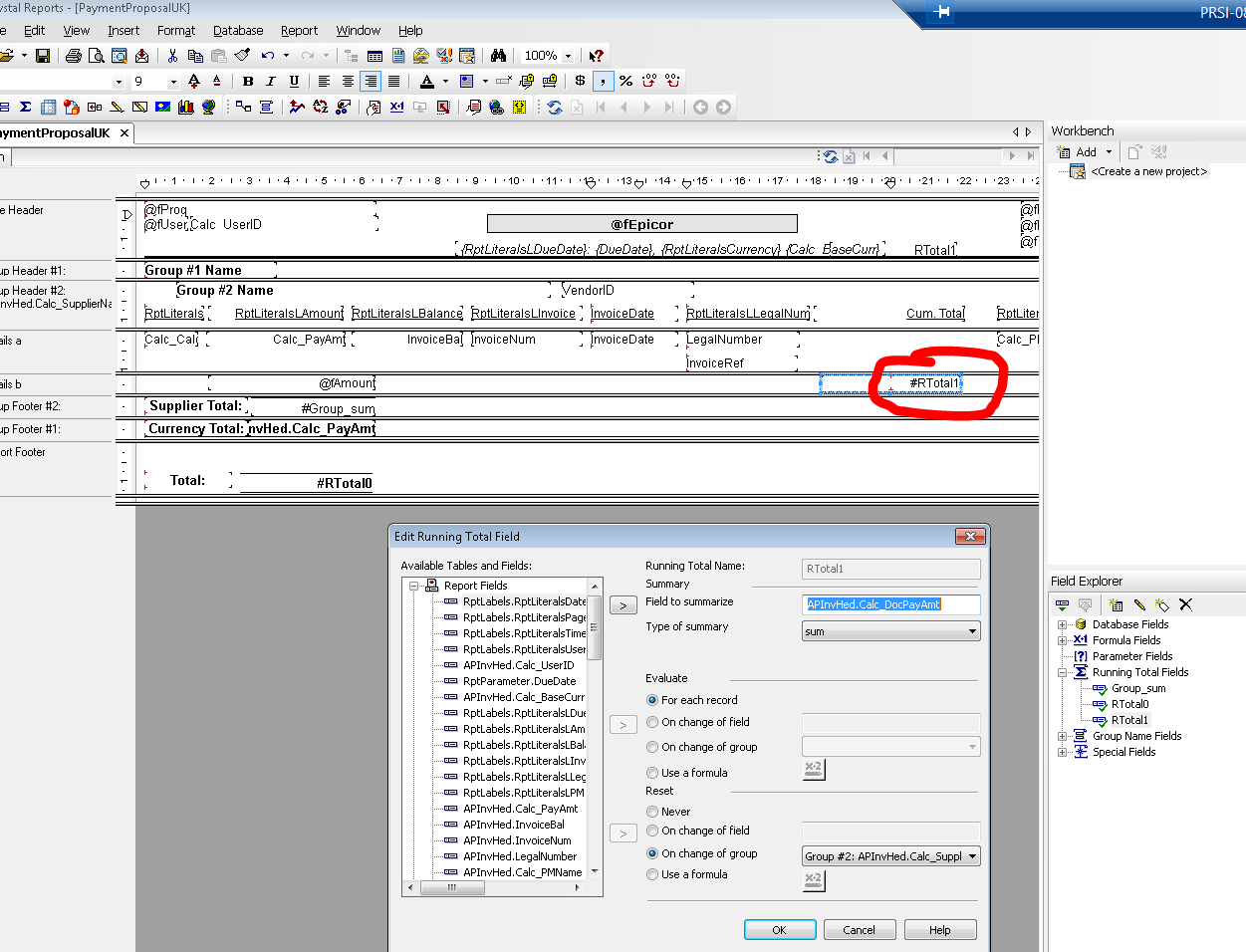 In Payment Proposal crystal report, i’m trying to only return records were the running total is greater than 0…(so no negative balances).
