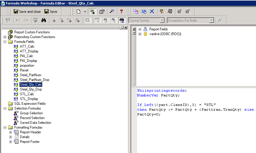 I have a Crystal Report report that seems to adding 1 meter of steel to ever item i ship, but this is only appearing on what product code (GARFOS) i’ am sure it must be to do with the Crystal Report formula.