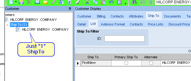 Adding a ShipTo in Customer entry will create another ShipTo record, but this one will have a non-null ShipToNum. The ShipTo tab in Customer entry will always show one less record than actually exists for this customer.