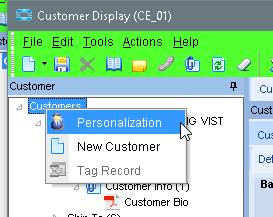 In Customer Tracker, the Tools -> Options presents a dialog without a Tree View tab. I have to right click on Customer in the tree pane, and select Tree Options to bring up the Tree Options dialog - which is nothing like the Tree View tab in the Options dialog of Cust entry.