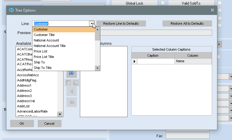 The way I can makes changes to the Tree format in Customer Entry is with Tools -> Options and then the Tree View tab on the Options dialog (like you show)