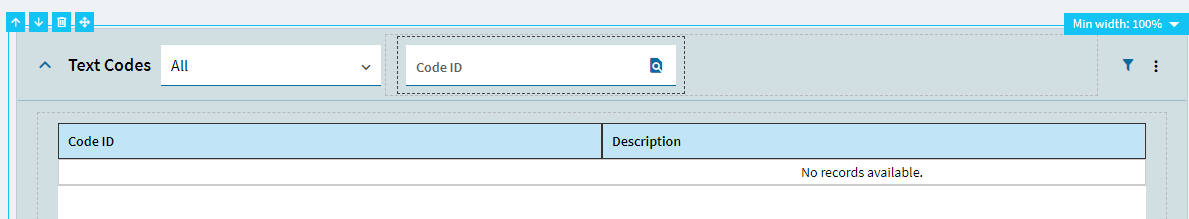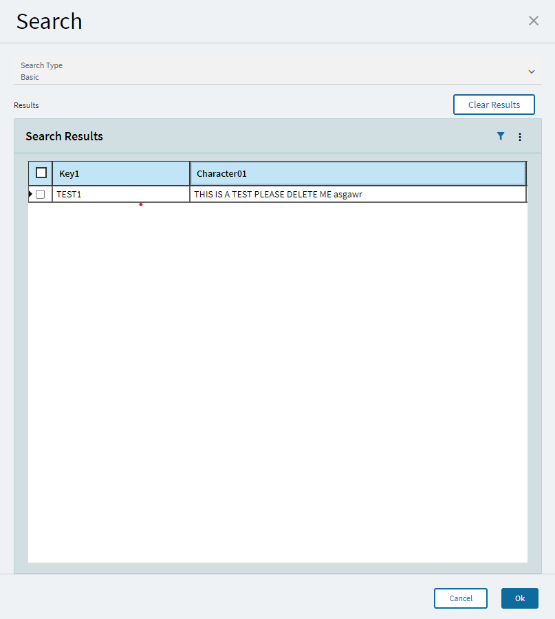 On the landing page for this new application, I have enabled the search function on the Code ID field. what I want to know is how do you bring the same column headings into the search function they are currently set as Key 1 and chareter01 not the custom description see image below