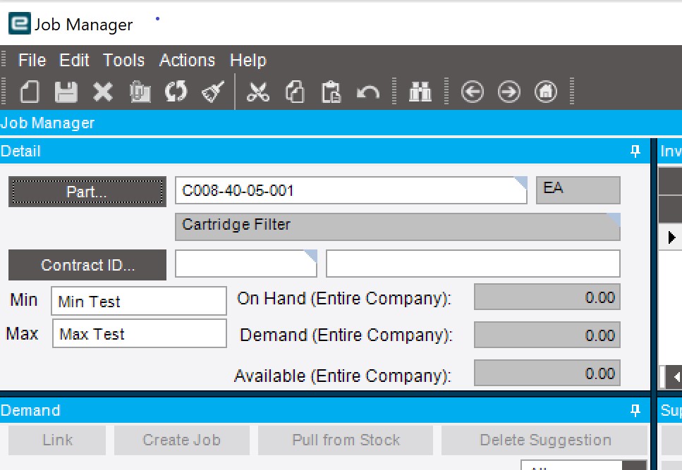 I’m trying to add a couple of Fields to the Job manager form. I looks like it is a custom Epicor module. I not sure the best way to get the PartNum to use as a Parameter in a BAQ search. I have the Text Boxes and the BAQ to get the Min and Max values I need but the Control doesn’t have the usual Text or Value properties i’m use to.