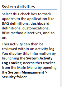 PS: Check out on Company Config or Company Maintenance there is a Track System Activities Checkbox.