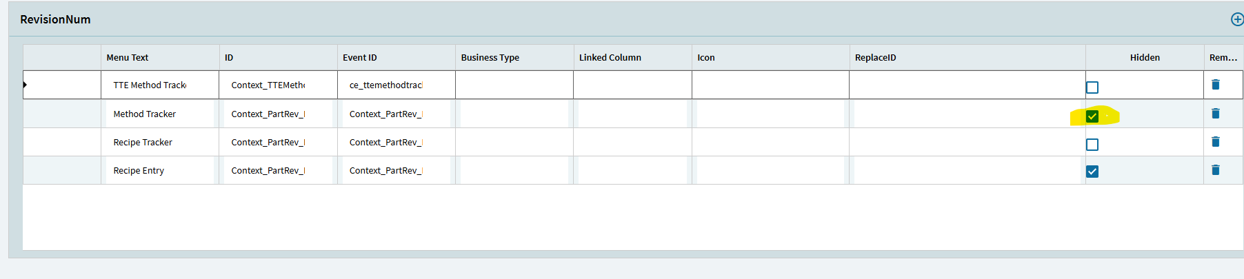 I have come across the same issue. How do you hide the standard method tracker? I don’t see it in context menu maintenance under partRev.RevisionNum