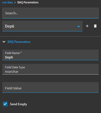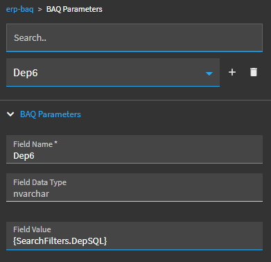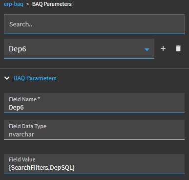 Can you share the param value expression? I suspect it’s passing a tilde delimited list rather than one expected by t-sql IN clause. So your BAQ works for in(‘dept1’) but not for in(‘dept1~dept2’). If that’s the case, you can Convert to sql like so:
