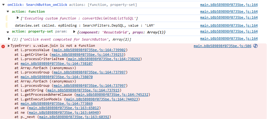I just ran the application again with the browser tools (I forgot you had to turn on debug mode, that was where I was confused) and it looks like the issue is that the expression must have a join clause.