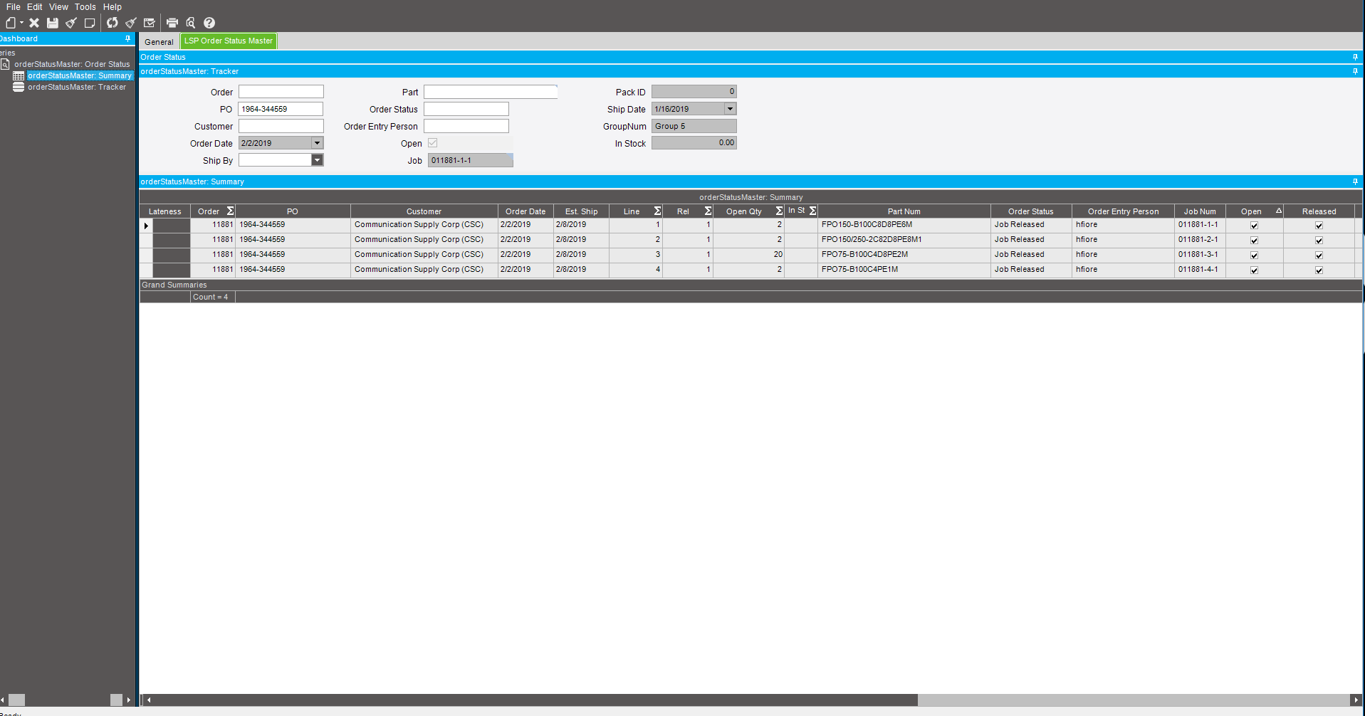 Found the issue I think. If there is a rule setup for a field in tracker so it does not filter when deployed. I had a rule for “in Stock” field which is OnHandQty and it was supposed to turn green when the order selected had parts that were in stock.
