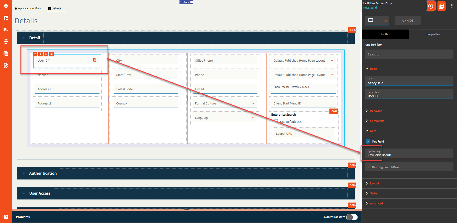 This behavior is happening because the base form field is bound to User.UserID. Change the binding to KeyFields.UserID and it will work just fine.