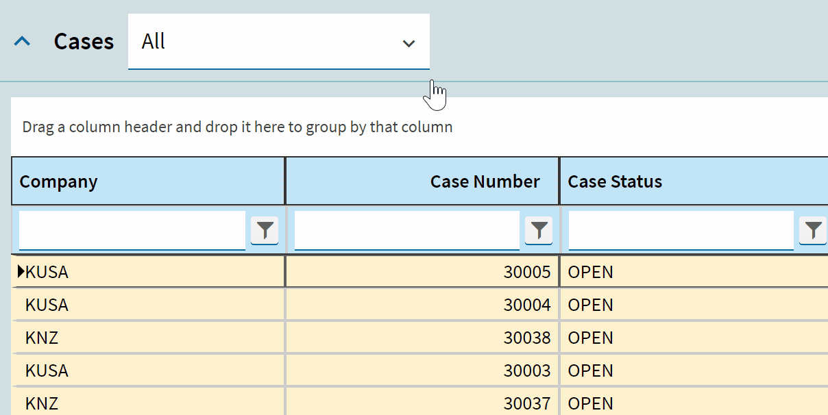 In my example have filters to show open cases, closed cases, cases from company A, cases from Company B, and of course the default “All” view which is unfiltered.