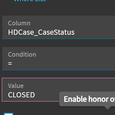 I have tried adding using the “Where List” with no luck as well as just entering the where clause