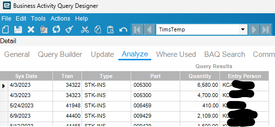 In my BAQ for STK-INS transaction types I’ll show you my parameters and output. We don’t do non-conformances from jobs, so that would be something I’d have to play around with when I have time.