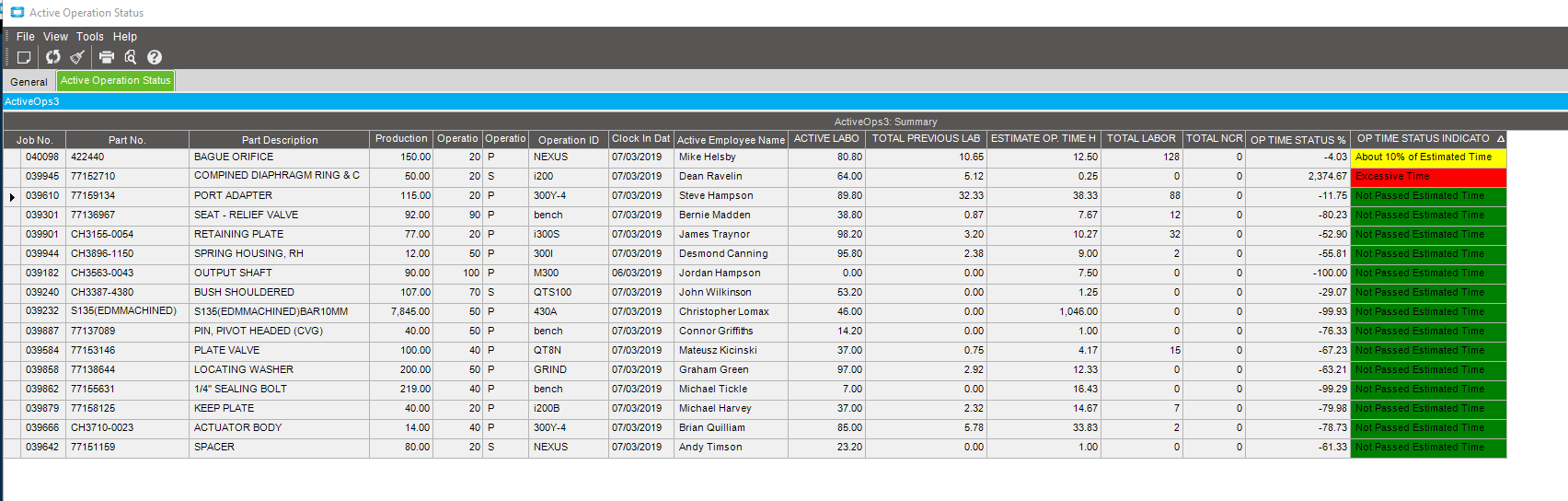 just an idea i have done if you are interested in highlighting such transactions, which is creating a BAQ/dashboard refreshed each minute for active labor transaction with calculated field to count the difference between current time and clock in time and add this to the total of any previous transaction times (subquery) then compare that to the estimated time for production/setup transactions