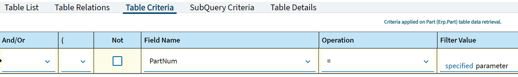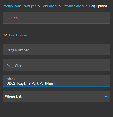 but I need filter the baq with partnum. i put the conditon in the where section. but it doesn’t work. without the filter, i got the listin the grid. but if I added the filter, i got empty in the grid.