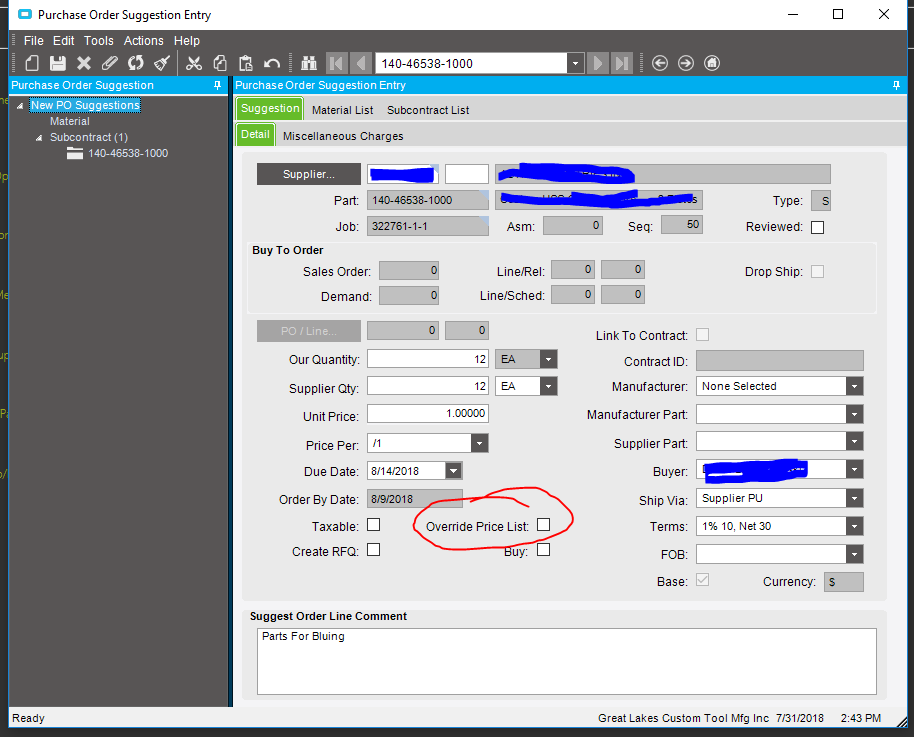 When creating a PO, we have a post directive that runs on PO.GetNewPODetail which sets OverridePriceList = true. This works fine.