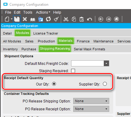 is there a way to default the quantity option when you do a mass receipt and have it match the one on the purchase order. It seems that regardless of the option on the purchase order (Our Quantity or Supplier Quantity) The Mass receipts defaults to “Our Quantity” and confuses some people as we can order and and stock in different UOMs.