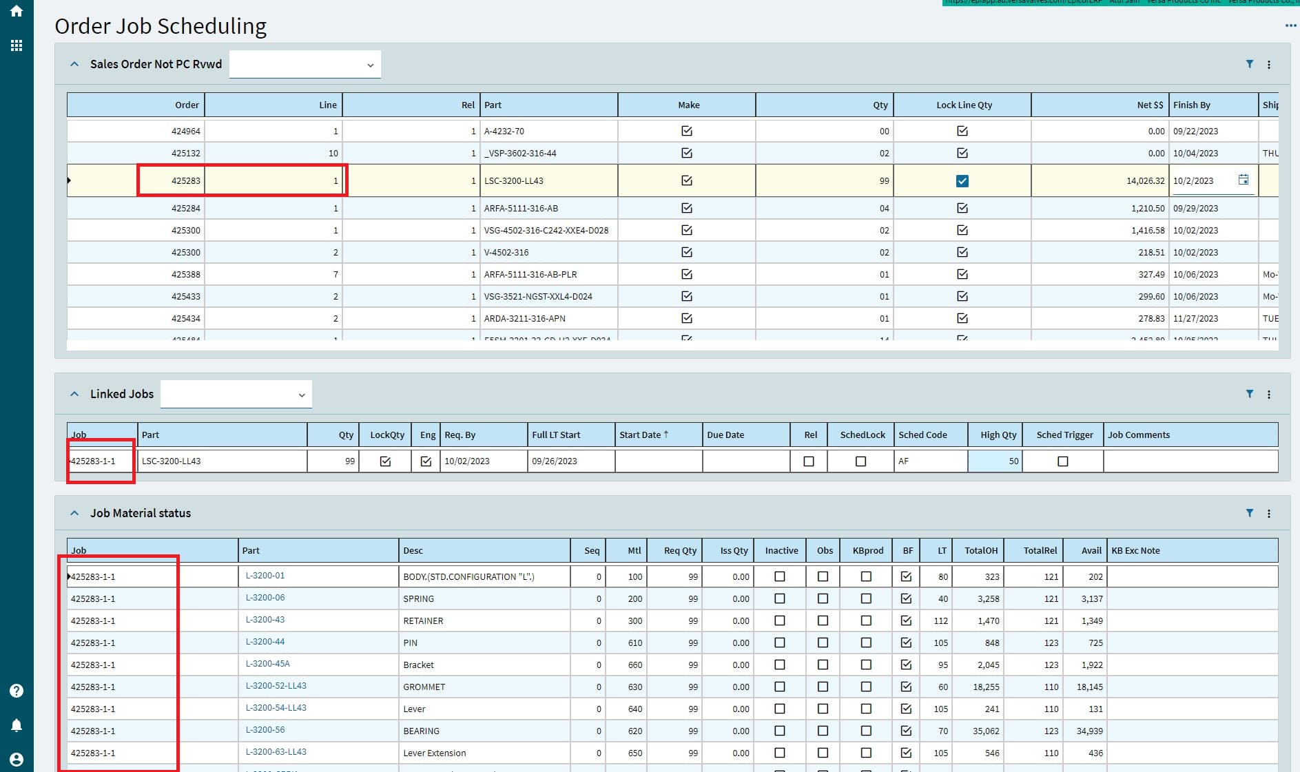 After converting it to Kinetic it shows delay by one record. In this screenshot marked in red , if we click on top pane, the “Linked Jobs” and “Job Material Status” are displayed correctly.