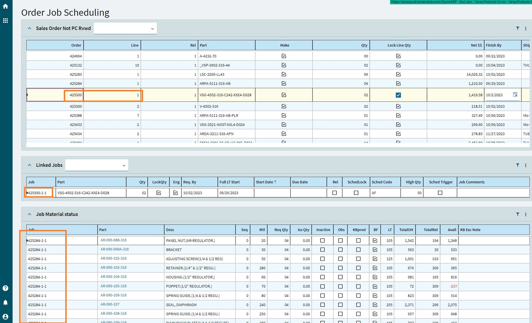 I had clicked on the job which is just above the job marked in orange, nothing happens and when I clicked on job marked in orange, the “Linked Jobs” is correct but the “Job Material status” is the one for record selected previously.